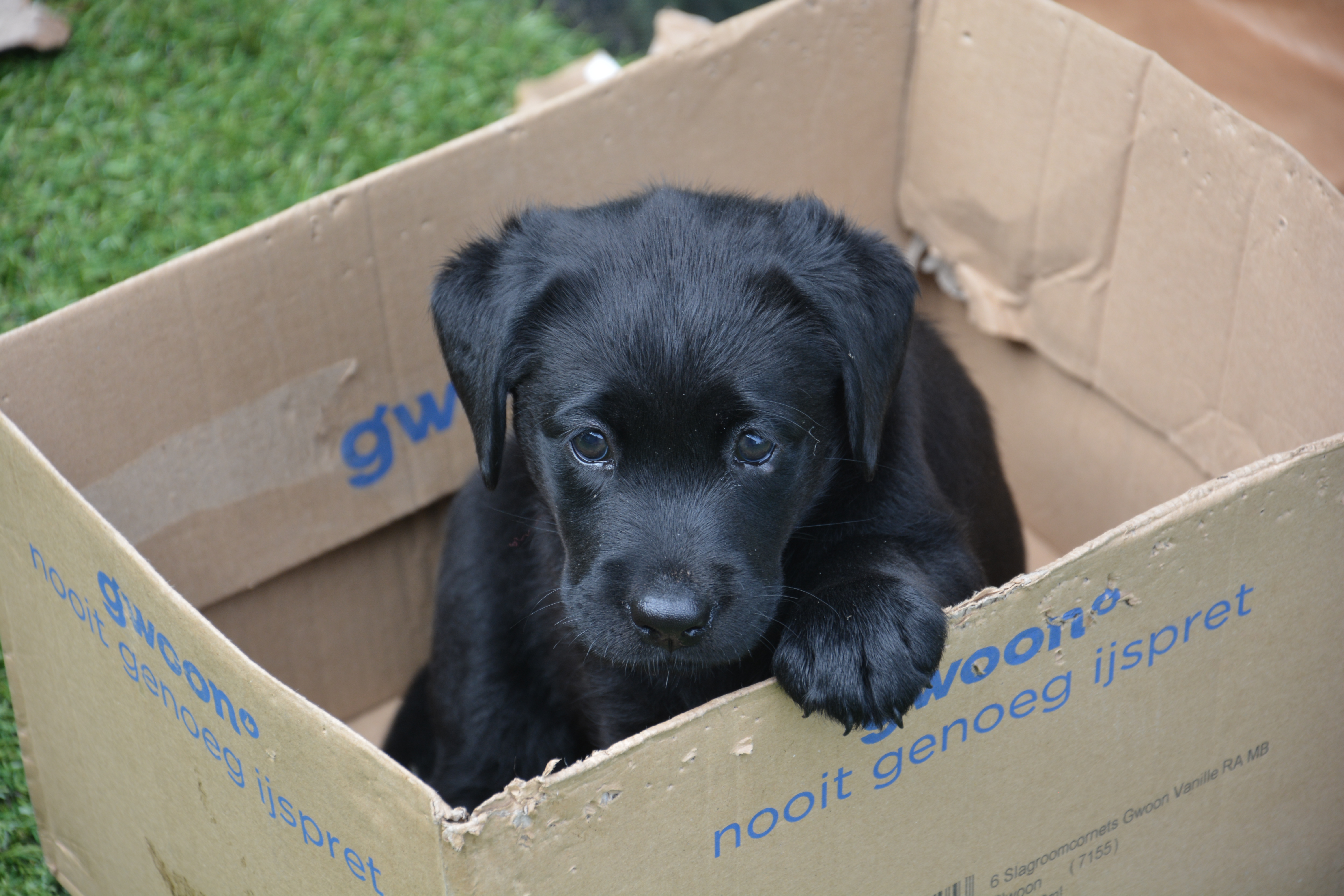Fokker van zwarte en gele labradors