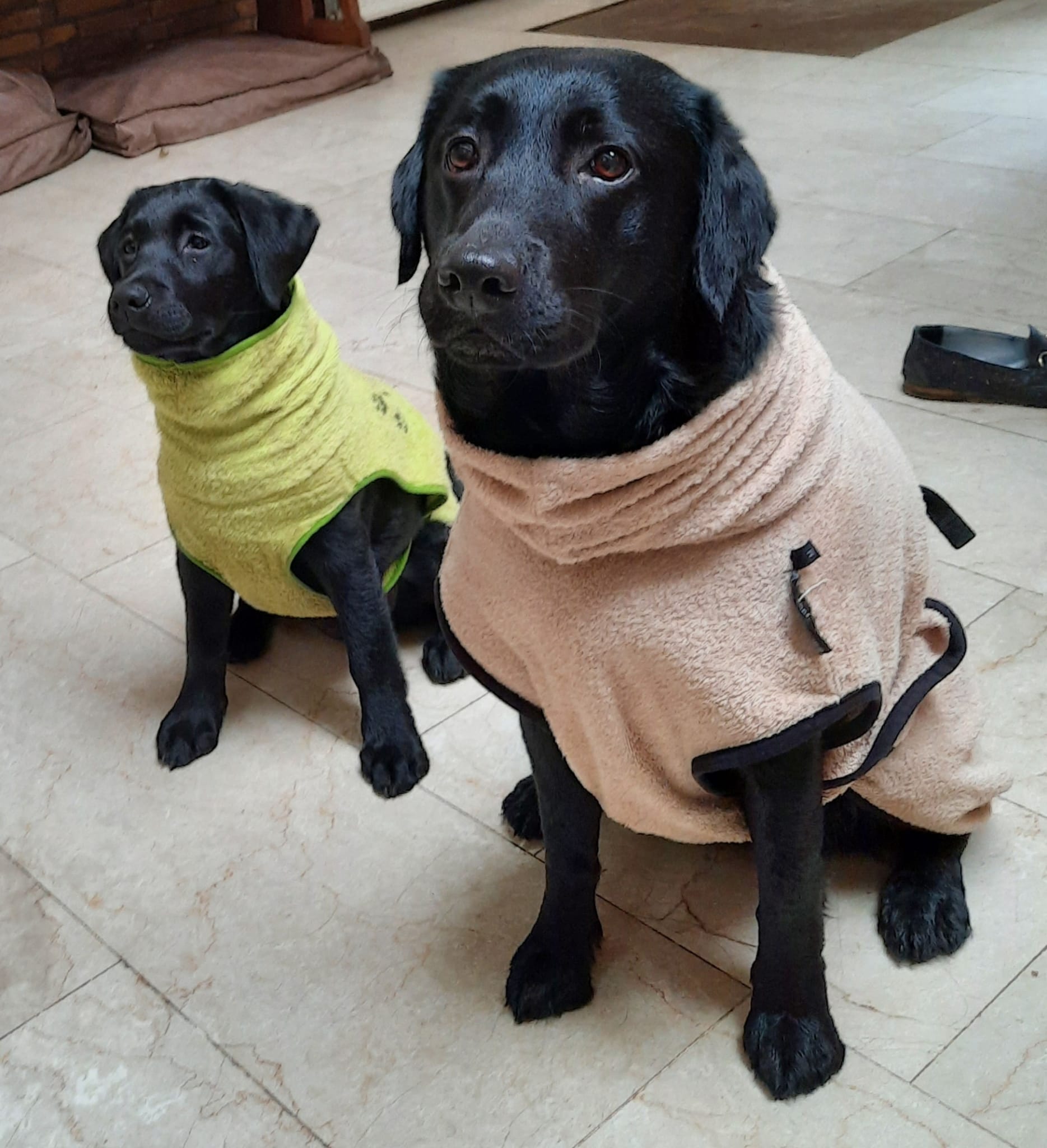 Fokker van zwarte en gele labradors
