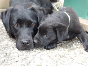 Bailey groeide bij ons op tijdens een hittegolf, een pittige tijd. Als pup trok ze veel naar Juneau, ze lagen vaak samen onder de tuintafel.