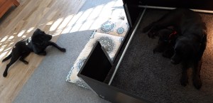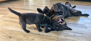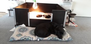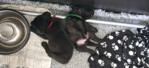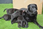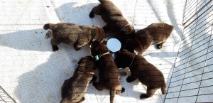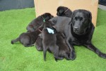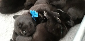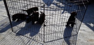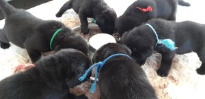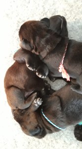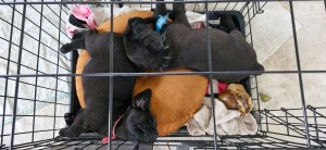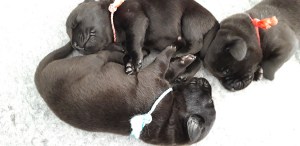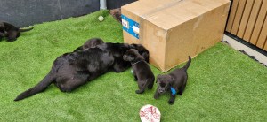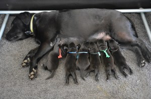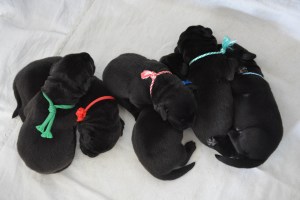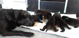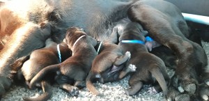 Zwarte werpkist, zwarte moeder, zwarte pups, foto’s maken is een uitdaging. De gekleurde bandjes is vaak het enige wat goed is te zien 🙂