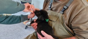 8 november 2024 – Vandaag zijn de pups gechipt door de Raad van Beheer. Ze zaten een beetje beduusd op schoot bij Mels, terwijl de chipper met een wattenstaafje wangslijm afnam, alcohol in de nek goot en een chip inschoot. Pijn deed het niet gelukkig 🙂