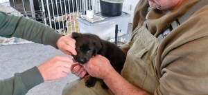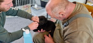15 oktober 2024 – De pups krijgen voor de eerste keer een wormkuurtje. Ze mogen daarna meteen drinken bij hun moeder. We merken niet dat ze er last van hebben.