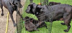 3 oktober 2024 – Vandaag mocht Gilly even op bezoek bij Juneau en de pups. Op veilige afstand, dat wel. Juneau vond het prima, maar bleef wel de hele tijd bij de pups in de werpkist.