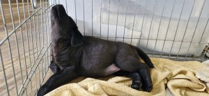 30 september 2024 – Om 02:30 maakt Juneau ons wakker, ze wil naar buiten. Na een korte wandeling in het donker blijft ze onrustig in de kamer rondlopen. 2 uur later wordt de eerste pup geboren, een teefje. Daarna worden nog 2 teefjes en 3 reutjes geboren. Ze zijn allemaal zwart.