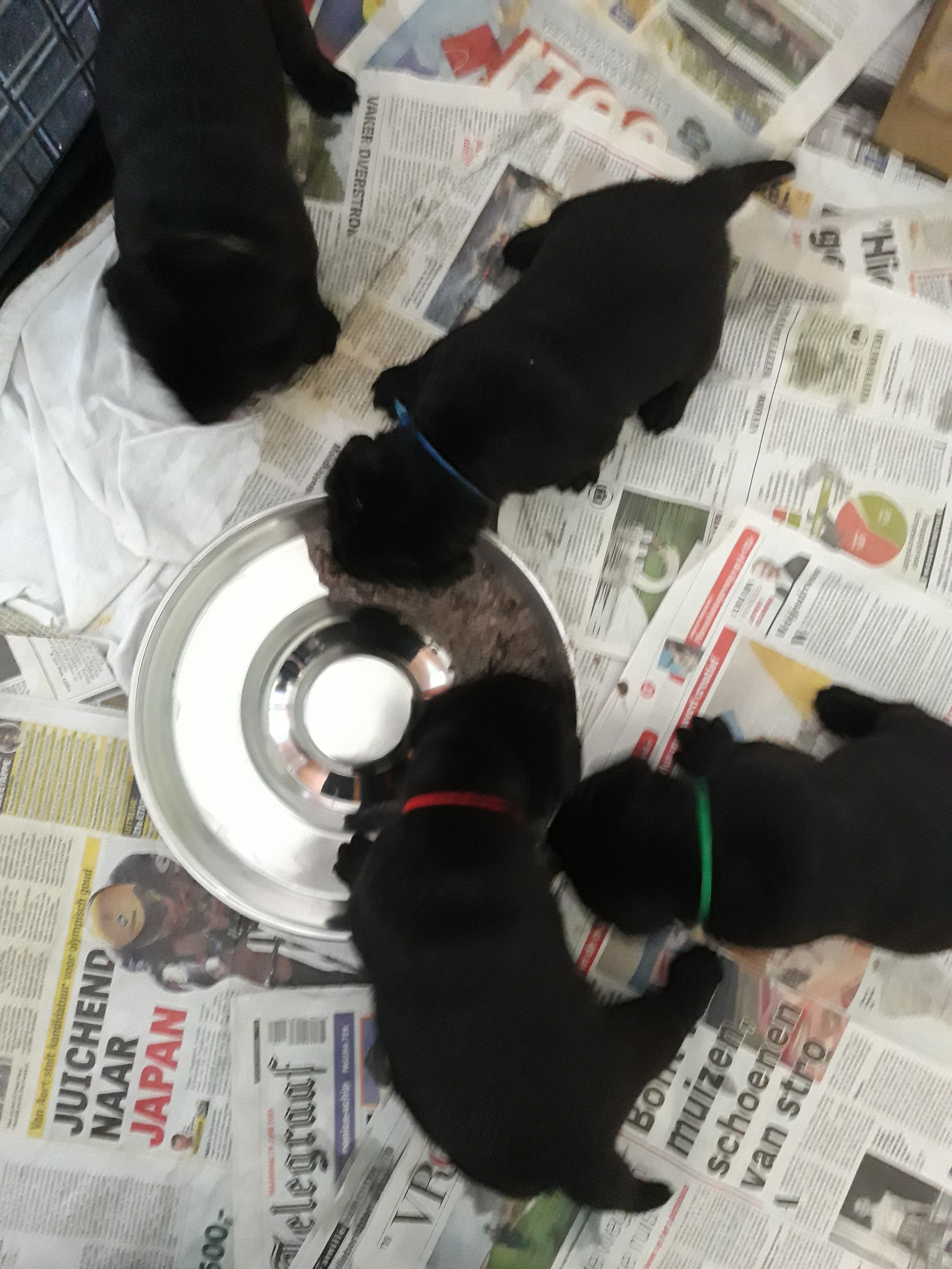Fokker van zwarte en gele labradors