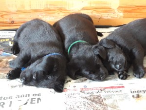 Fokker van zwarte en gele labradors