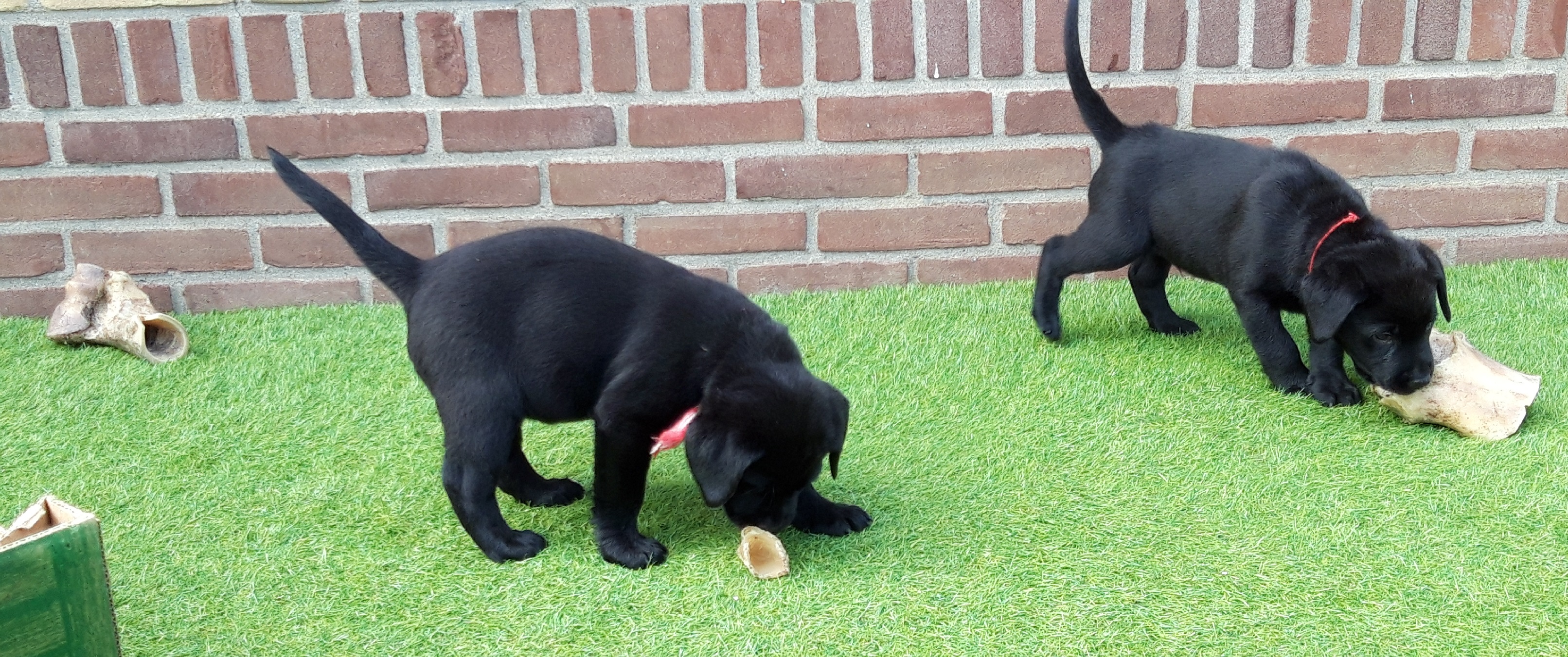 Fokker van zwarte en gele labradors