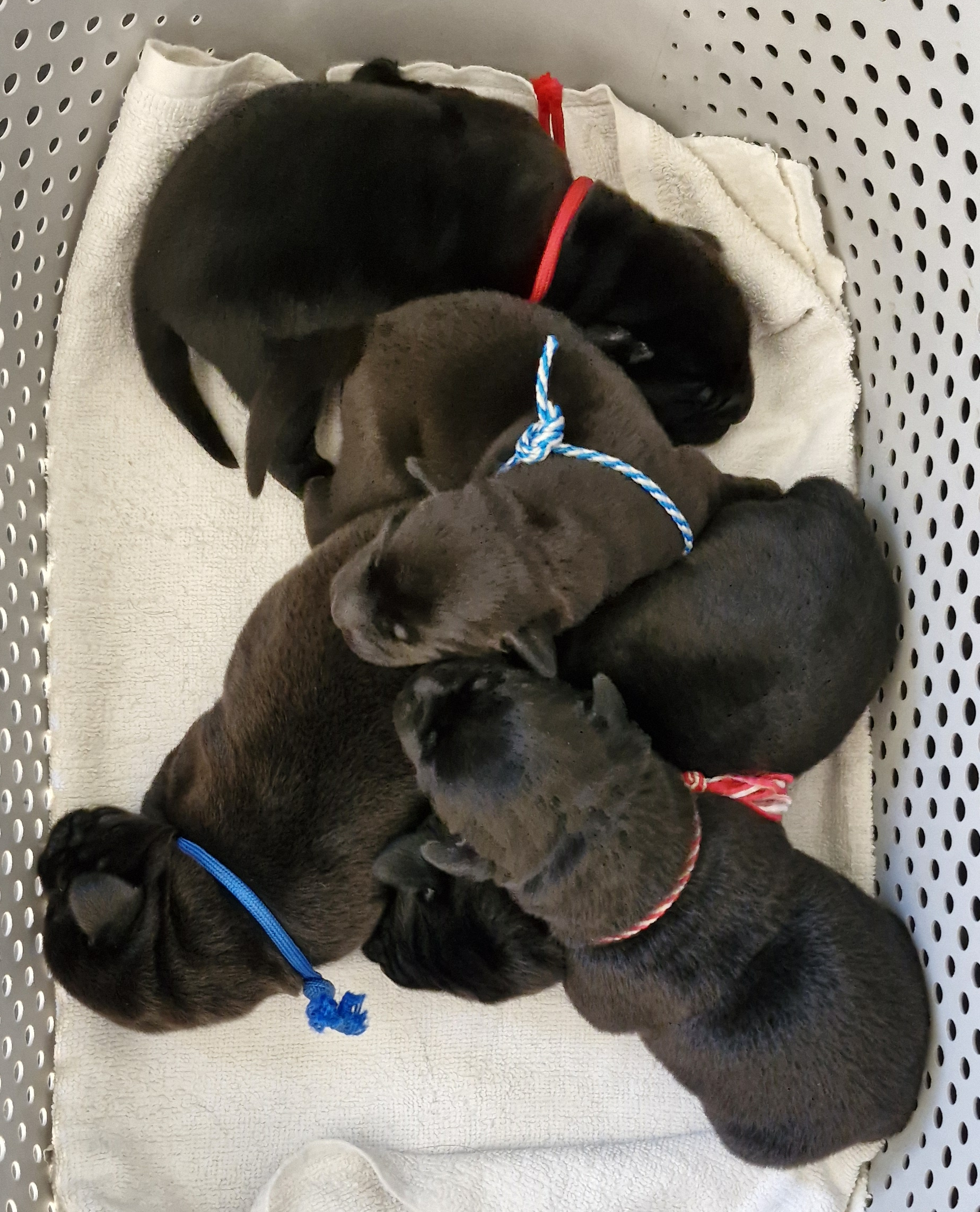 Fokker van zwarte en gele labradors